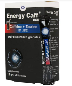 هر ساشه انرژی کاف بی اس کا محتوی 75 میلی گرم کافئین، 100 میلی گرم تائورین، 2.2 میلی گرم ب1 و 10 میکروگرم ب12 می باشد. این فراورده باعث افزایش انرژی، کاهش خستگی و افزایش سطح هوشیاری می شود.