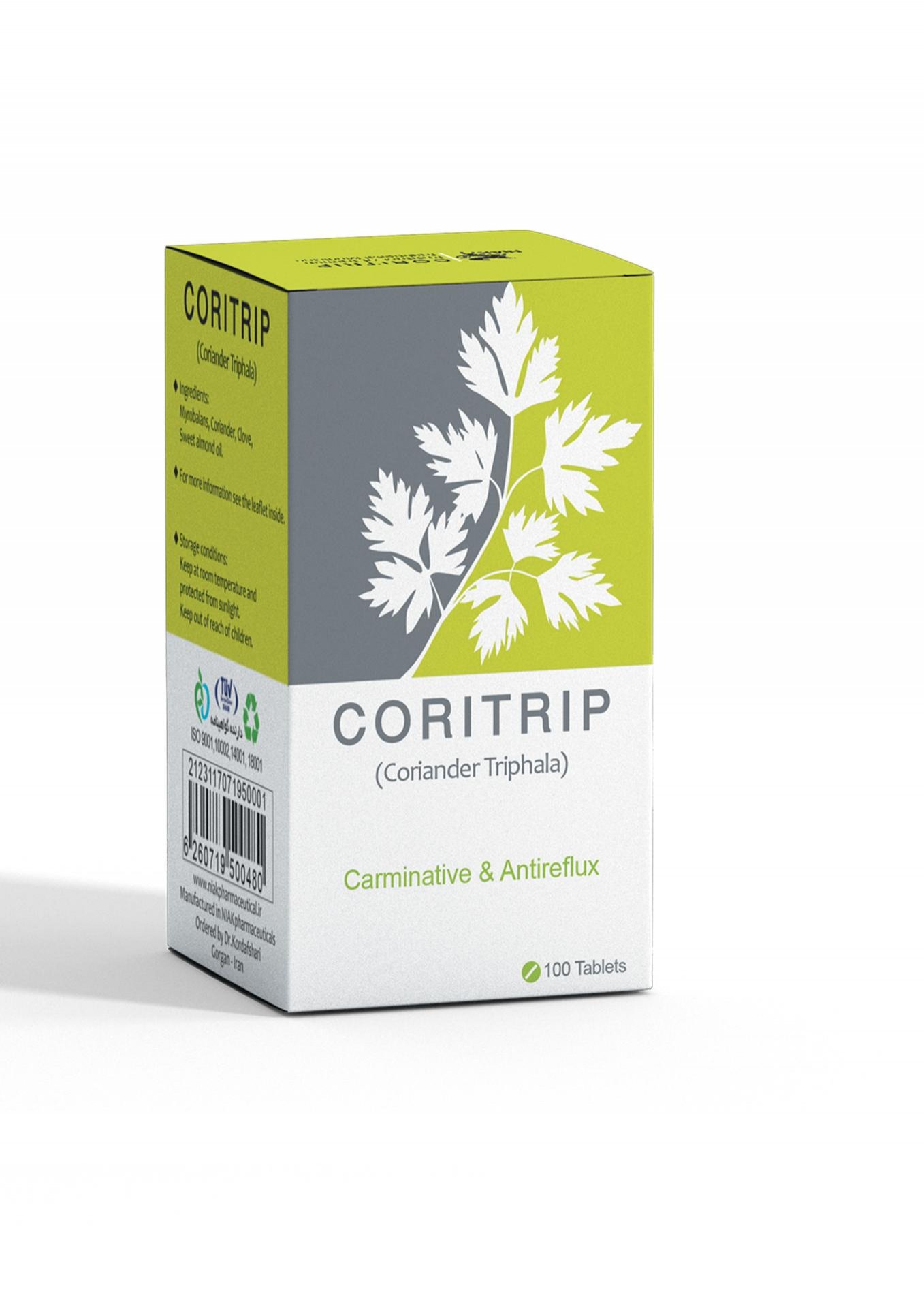 قرص کوری تریپ یا اطریفل گشنیزی تشکیل شده است از هلیله، بلیله، آمله، گشنیز، میخک و روغن بادام شیرین و به عنوان ضد نفخ و ضد سوء هاضمه کاربرد دارد. داروی کمکی در درمان آی بی اس استفاده می شود.